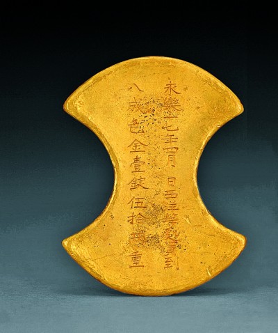 展厅中,一块金灿灿的明代金锭格外夺目。它由郑和第五次下西洋归来时在西洋所买的黄金制作而成;广州市舶太监韦眷的墓中出土的孟加拉银币、威尼斯银币,也见证了明代广东贸易的繁盛。