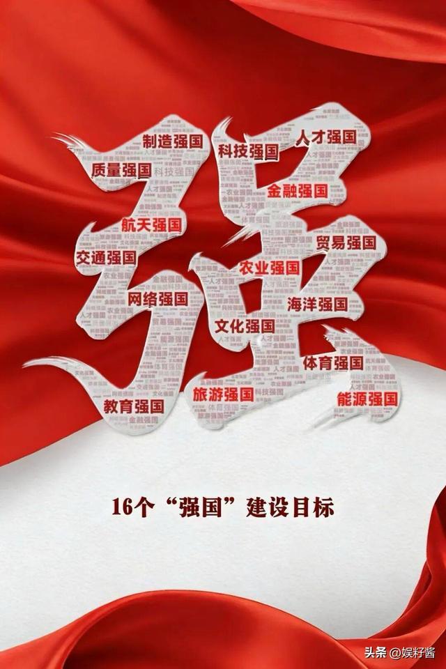 规划里还明确提出16个“强国”目标:制造强国、科技强国、航天强国、交通强国、网络强国、能源强国、金融强国、贸易强国、农业强国、海洋强国、旅游强国、教育强国、人才强国、文化强国、体育强国、质量强国。一个接一个,全是硬指标。